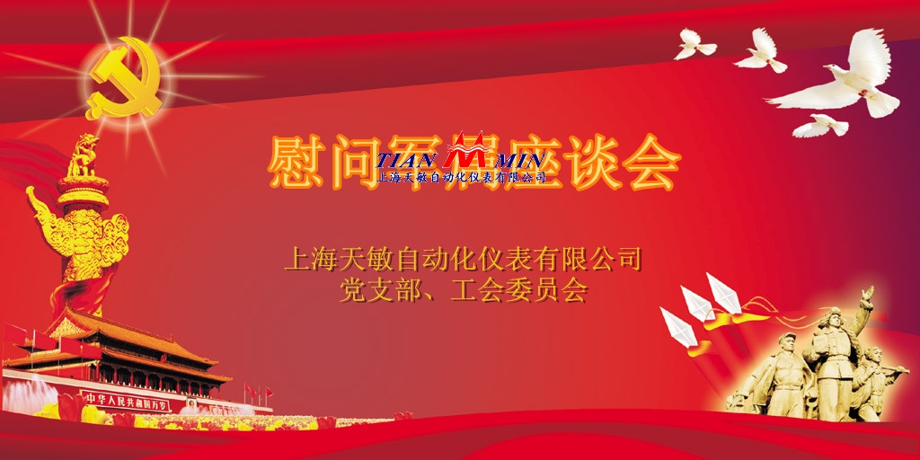 2016年新年之前,天敏公司黨支部、工會(huì)委員會(huì),代表全體員工對(duì)公司軍屬員工致以節(jié)日的問(wèn)候,并送上新年的祝福!金羊辭舊歲,火猴迎新春。值此新春佳節(jié)來(lái)臨之際,上海天敏自動(dòng)化儀表有限公司黨支部、工會(huì)委員會(huì)代表公司全體員工,向軍屬致以節(jié)日的祝賀和親切的...
